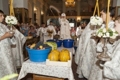По окончании Литургии архипастырь совершил чин освящения фруктов, собранных от урожая этого года.