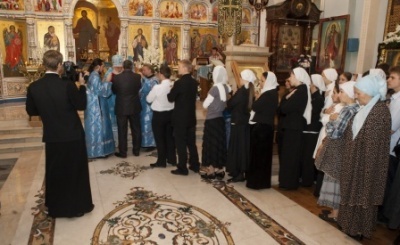 За литургией также молились студенты Ташкентской духовной семинарии, которые в этот день по сложившейся традиции все вместе причастились Святых Христовых Таинств.