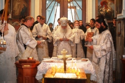 После Таинства Причастия и отпуста митрополит Викентий совершил панихиду по всем от века усопшим православным христианам, на поле брани и в братоубийственной смуте на Украине убиенных, в также всем погибшим в недавней авиакатастрофе в небе над Синайским полуостровом.