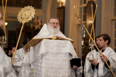 Его Высокопреосвященству сослужили: митрофорный протоиерей Михаил Котляров, протоиерей Сергий Николаев, протоиерей Сергий Андреев, протоиерей Валерий Бостан, иерей Игорь Лосев, иерей Антоний Коршунов, диакон Андрей Тонких, диакон Феодор Бураков, диакон Олен Лин, иеродиакон Спиридон (Поздеев), иеродиакон Михаил (Столяров), диакон Борис Лаврик.