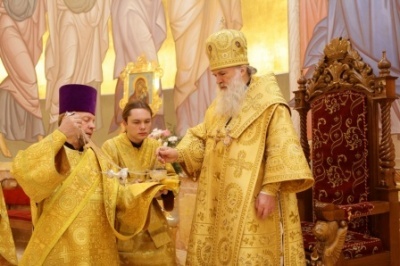 Его Высокопреосвященству сослужили: митрофорный протоиерей Михаил Котляров, протоиерей Сергий Алахтаев, иерей Александр Терещенко, протодиакон Александр Несин, иеродиакон Спиридон (Поздеев), иеродиакон Михаил (Столяров), диакон Александр Колотовкин, иеродиакон Модест (Бузин).