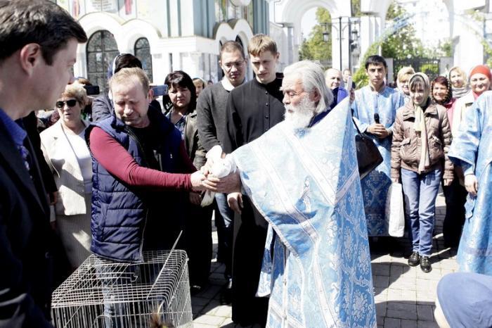 В конце Богослужения по традиции Русской Православной Церкви на соборной площади Свято-Успенского кафедрального собора священнослужители и дети отпускали в небо голубей, символизирующих мир, простоту и радость, которую возвестил Архангел Гавриил Божией Матери о рождении Мессии и Спасителя мира.