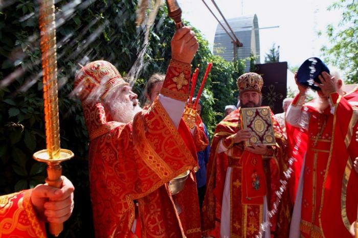 После Таинства Причастия и заамвонной молитвы вокруг недавно освященного храма был совершен Крестный ход, а затем митрополит Викентий обратился к прихожанам со словами своей проповеди, поздравив всех с праздником Светлого Христова Воскресения и рассказав о значении для нас искупительного подвига Господа нашего Иисуса Христа: