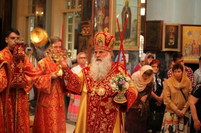 Его Высокопреосвященству сослужили: протоиерей Сергий Андреев, протоиерей Сергий Николаев, иеромонах Даниил (Губайдулин), протодиакон Александр Несин, иеродиакон Спиридон (Поздеев), иеродиакон Михаил (Столяров), диакон Андрей Лин.