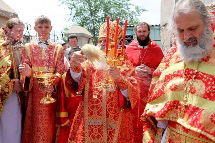 После Таинства Причастия и отпуста архипастырь совершил водосвятный молебен и Крестный ход вокруг храма, а затем обратился к прихожанам со словами своей проповеди.