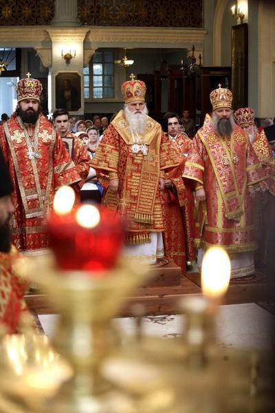 После Таинства Причастия и отпуста архипастыри вознесли молитвы ко святителю Луке (Войно-Ясенецкому), и затем было пропето величание этому святому угоднику Божию, покровителю нашего края.