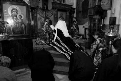 За богослужением молились священнослужители и прихожане собора.