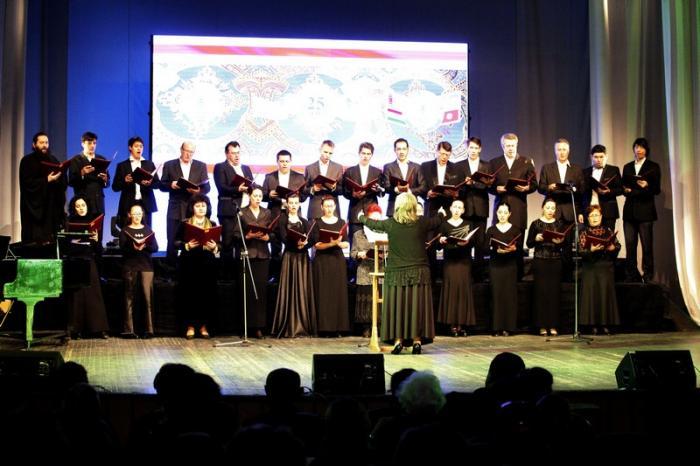 Концертная часть была открыта великолепным выступлением Архиерейского хора при Свято-Успенском Кафедральном соборе г.Ташкента. Без сомнения, успех этого выступления во многом был обеспечен его солистами - Заслуженным артистом Узбекистана, Лауреатом Международных конкурсов Кириллом Борчаниновым и Лауреатом Международных конкурсов Мариной Бейнчук.