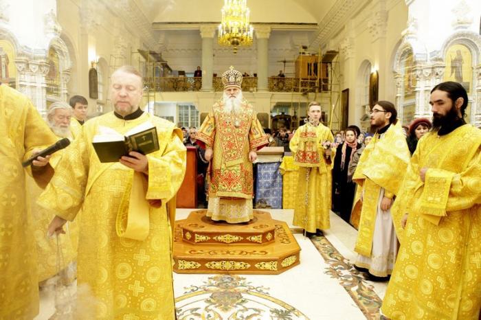 Его Высокопреосвященству сослужили: митрофорный протоирей Михаил Котляров, протоиерей Сергий Алахтаев, протодиакон Александр Несин, иеродиакон Спиридон (Поздеев), иеродиакон Михаил (Столяров), диакон Григорий Январев.