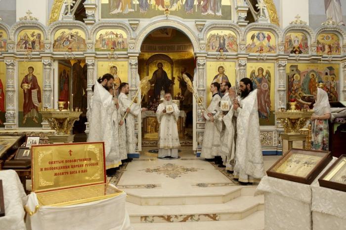 Его Высокопреосвященству сослужили: митрофорный протоиерей Михаил Котляров, иерей Игорь Лосев, иеромонах Спиридон (Поздеев), протодиакон Александр Несин, иеродиакон Михаил (Столяров), диакон Феодор Бураков, диакон Борис Лаврик, диакон Григорий Январев, диакон Александр Аношкин.