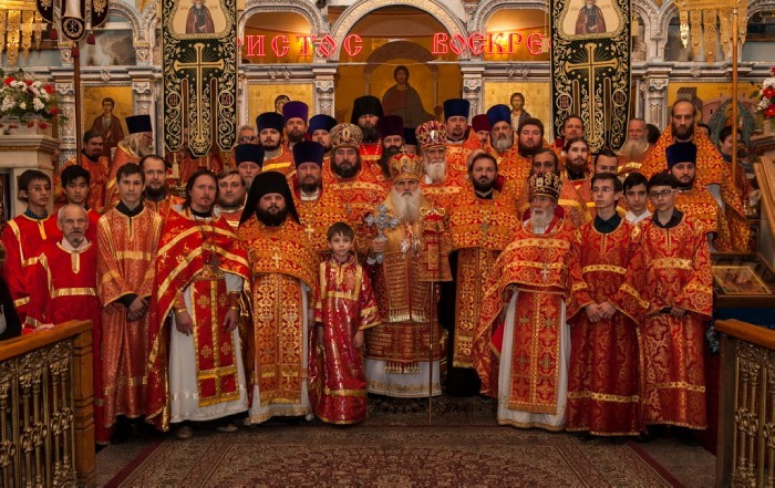 Но главное, владыка, мы желаем Вам в эти дни радости душевной о Воскресшем Господе, чтобы быть Вам похожим на преподобного старца Серафима Саровского, у которого круглый год Пасха была в сердце своем. Он всегда приветствовал приходящих к нему этими победными словами: «Христос Воскресе, радость моя!» Он делился этой радостью со всеми людьми, которые к нему приходили, и каждый приходящий к нему получал великую радость. Дай Бог, владыка, чтобы и Ваше служение и Ваши труды были радостью и примером для всех нас. Крепкого телесного и душевного Вам здоровья и многая лета!»