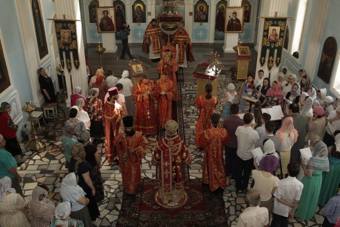 Его Высокопреосвященству сослужили: митрофорный протоиерей Игорь Балухатин, протоирей Иоанн Волощук, иерей Кирилл Пачин, диакон Андрей Тонких, диакон Михаил Пастухов, иеродиакон Спиридон (Поздеев).