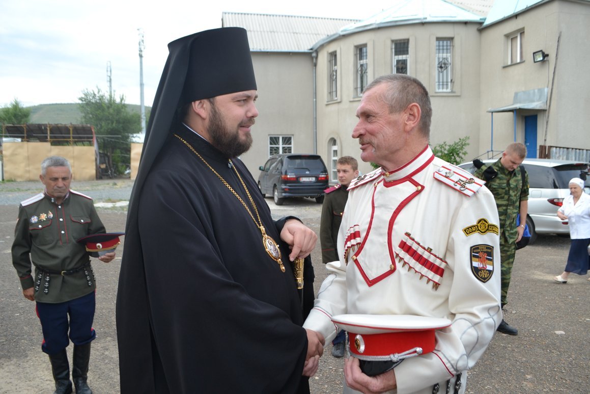 Рассказав о передаче в дар Владимирскому собору от Русского казачества в Сан-Франциско, иконы святого праведного Иоанна Шанхайского, Его Преосвященство, сказал, что любой человек, которому необходимо помолиться этому святому, может просить об этом дежурного священника, пока икона не будет водружена на свое постоянное место. Владыка Даниил также поблагодарил «все доброе казачество, хотя, к сожалению, не всегда бывает так в наше время, и есть примеры нелицеприятные, когда православное казачество опускается до суда с Церковью. Но есть у нас и доброе казачество. Когда человек переживает, болеет за дело, идет на какие-то уступки ради всеобщего блага. Вот тогда можно сказать – это добрый казак и это видно по делам». Его Преосвященство поблагодарил атамана Александра Зуева, который организовал недавно паломническую поездку по России для казаков-кадетов, называя это великим делом, потому что молодым предоставлена возможность прикоснуться к великим святыням России. И те казаки, которые доставили в Бишкек великую святыню, по словам Его Преосвященства также являют свою заботу и душепопечение. В завершении своего слова, Владыка Даниил попросил молитвенного ходатайства за Семиреческое казачество, «чтобы Господь утвердил на этих землях доброе казачество, потому что это наша история, наши истоки и наши предки. Так будем молиться, чтобы Господь умирил их и сделал их более крепкими».