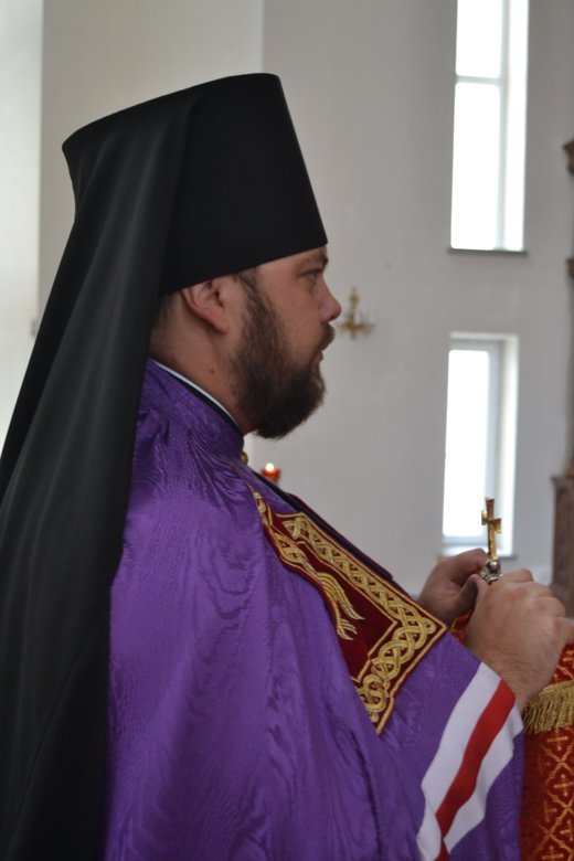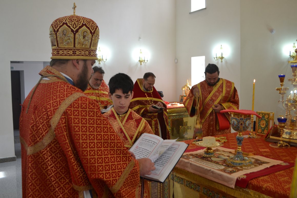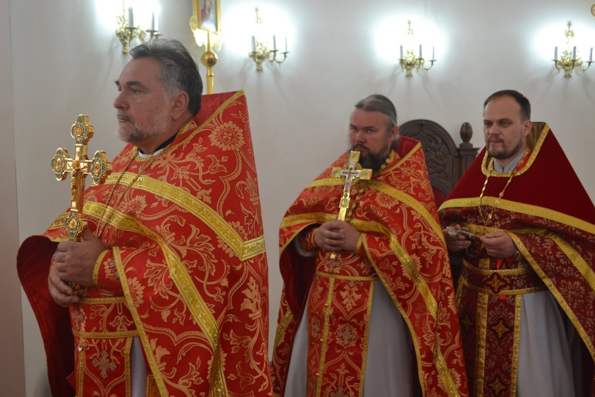 Его Преосвященству сослужили: митрофорный протоиерей Валентин Никонов, настоятель Владимирского собора протоиерей Алексей Зайцев, клирик Свято-Воскресенского собора иерей Георгий Дворовой, клирик Владимирского собора иерей Андрей Бутаков.