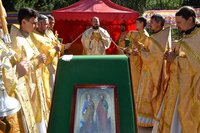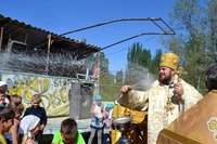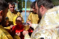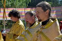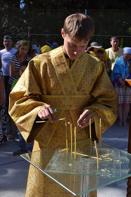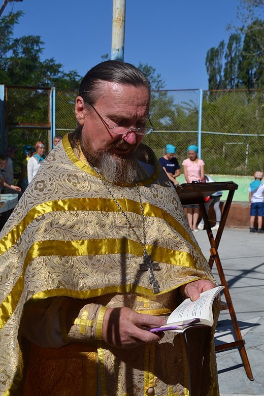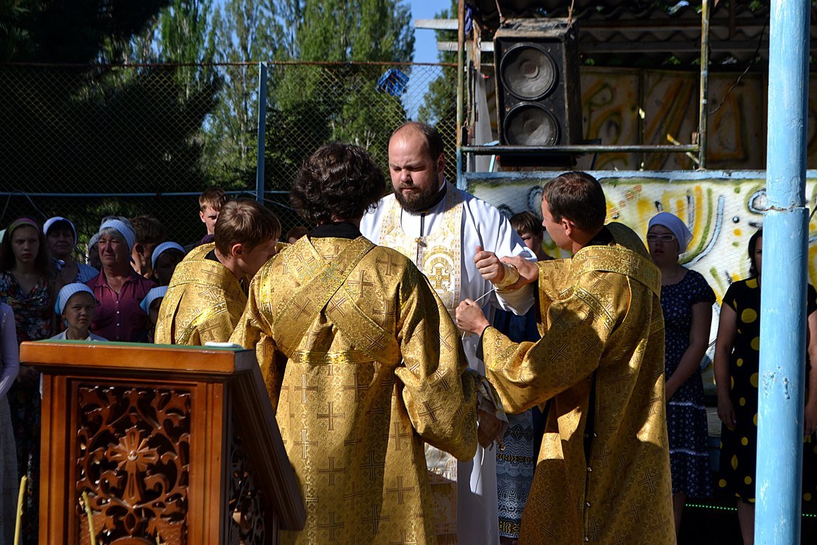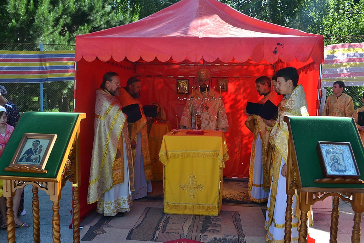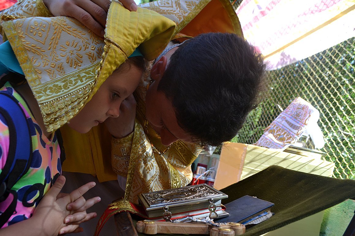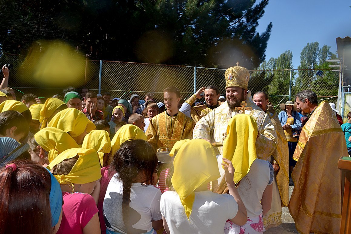 Проповедь перед Причастием прочитал священник Дмитрий Шушпанов. После Причастия был совершен молебен на начало всякого доброго дела, после которого Владыка Даниил окропил собравшихся на литургию детей и взрослый святой водой и пожелал ребятам хорошо провести время – «загорать, купаться и побеждать в соревнованиях».