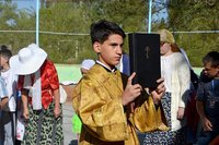 На юбилейный фестиваль «Духовное наследие Кыргызстана», который проходит уже в пятый раз, в этом году съехались ребята из всех благочиний Кыргызстана, представлены почти все приходы. Отличительной особенностью мероприятия является то, что на него приехали не только дети, но и родители. Участников фестиваля – четыреста пятьдесят человек, из которых триста – ребята из воскресных школ православных церквей страны.