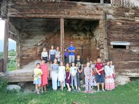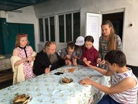 Дорога на Светлый мыс была недолгой. По приезду нас встретила руководитель Детского дома Гульнара, которая для всех его обитателей просто мама. Сейчас там 18 детей, все выпускники имеют высшее образование, работают, женятся и выходят замуж. У Гульнары уже 20 внуков. Сначала мы зашли в часовню в честь Иконы Божией Матери "Одигитрия", сохранившейся здесь с тех времён, когда был монастырь. Ей уже сто лет. Поклонились иконам, посмотрели редкие фотографии старых лет, фото насельников монастыря. Затем ребята из детского дома провели для нас экскурсию. У них хозяйство: коровы, овцы, кони, кролики, куры, собаки и кошки. Мы гуляли по невероятно красивым местам, где горы отражаются в озере, плещется рыба, трава, как в песне, по пояс, огромные деревья и синее-синее небо. В завершении экскурсии мы подошли к старинной мельнице, построенной без единого гвоздя, которую ребята из детского дома уже потихоньку начинают реставрировать.