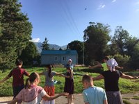 После ужина мы разместились в школьных классах прямо на полу, нам выдали матрацы с подушками, одеяла и постельное белье, а затем ребята до самой темноты вместе с детьми детского дома играли в мяч, катались на велосипедах и просто общались.