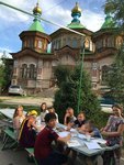 В первый день пути мы посетили Кафедральный Воскресенский собор г. Бишкека, где приложились к мощам Ираклия Иссык-Кульского, руководитель паломнического отдела Неонила Максимовна провела для нас экскурсию по территории собора. После обеда мы отбыли в заветный путь - на побережье озера Иссык-Куль в г. Балыкчи, где остановились на три дня при храме в честь блаж. Ксении Петербуржской. Настоятель храма, о. Афанасий окормлял нас духовно и, незаметно для нас, старался устроить наш быт наиболее интересно для детворы и удобно для взрослых. Назидательно, с огромной любовью, тонким и добрым юмором, с заботой и пониманием он молился с нами, читал нам вслух за трапезой, исповедовал, подсказывал, смотрел с детворой полезное кино, беседовал со всеми вместе и по отдельности. Мы ходили на пляж, купались и ныряли с пирса, от души любовались закатами, рисовали пейзажи, и под руководством батюшки скорректировали свою дальнейшую программу так, чтобы посмотреть как можно больше красивых и благодатных мест на Иссык-Куле.