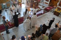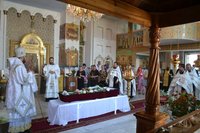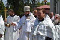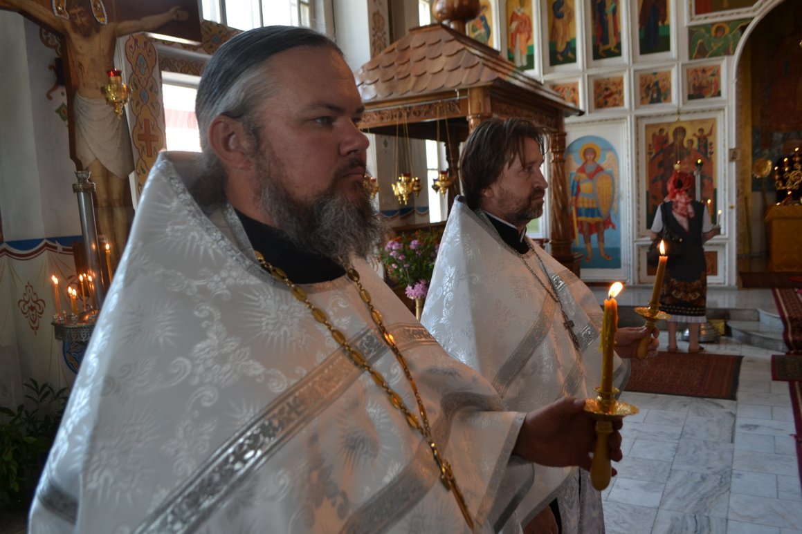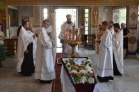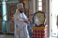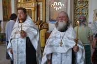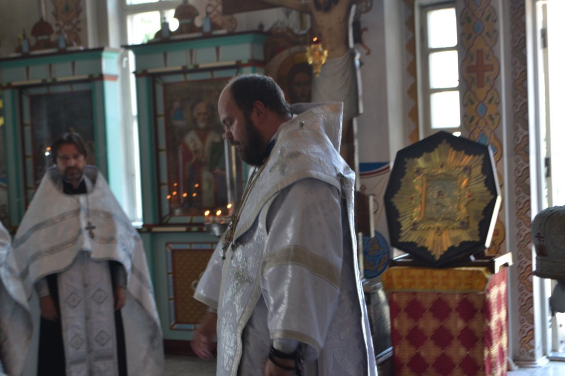 Его Преосвященству сослужили: митрофорный протоиерей Валентин Никонов, настоятель храма св. прав. Иоанна Кронштадтского протоиерей Андрей Борисенко, клирики Свято-Воскресенского собора иерей Георгий Дворовой, иерей Олег Белотуркин.