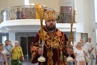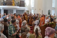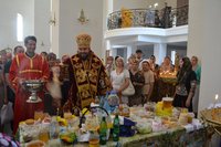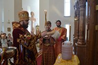 За богослужением было совершено славление Кресту. В ознаменование начала Успенского поста Владыка Даниил освятил сосуды с медом, выставленные перед алтарем многочисленными прихожанами.