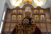 Его Преосвященству сослужили настоятель Владимирского собора протоиерей Алексей Зайцев, клирик Свято-Воскресенского собора иерей Георгий Дворовой.