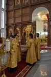 Его Преосвященству сослужили: настоятель Владимирского собора протоиерей Алексей Зайцев, клирик Свято-Воскресенского кафедрального собора иерей Георгий Дворовой, клирики Владимирского собора иерей Николай Головченко, иерей Никита Чебуков.