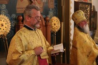 Его Преосвященству сослужили: митрофорный протоиерей Валентин Никонов, благочинный Бишкекского округа протоиерей Андрей Кунавин, клирики Свято-Воскресенского собора иерей Георгий Дворовой, иерей Сергий Чудайкин, иерей Олег Белотуркин.