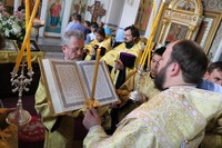 24 сентября 2016 года, неделю 14-ю по Пятидесятнице, субботу пред Воздвижением Креста, епископ Бишкекский и Кыргызстанский Даниил совершил Всенощное бдение в Алексеевском приделе Свято-Воскресенского собора.
