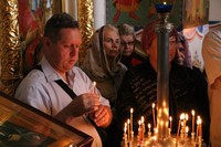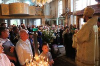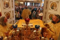 Перед Причастием, епископ Даниил обратился к прихожанам храма с архиерейским словом, в котором пояснил значение притчи из Воскресного Евангелия «о званных на пир». В своем обращении Его Преосвященство обратил внимание слушающих на две стороны содержания Евангелия – отказ званных прийти на пир и разделить радость с господином, и пребывание на пиру некоего человека, который пришел на праздник не в брачной одежде.