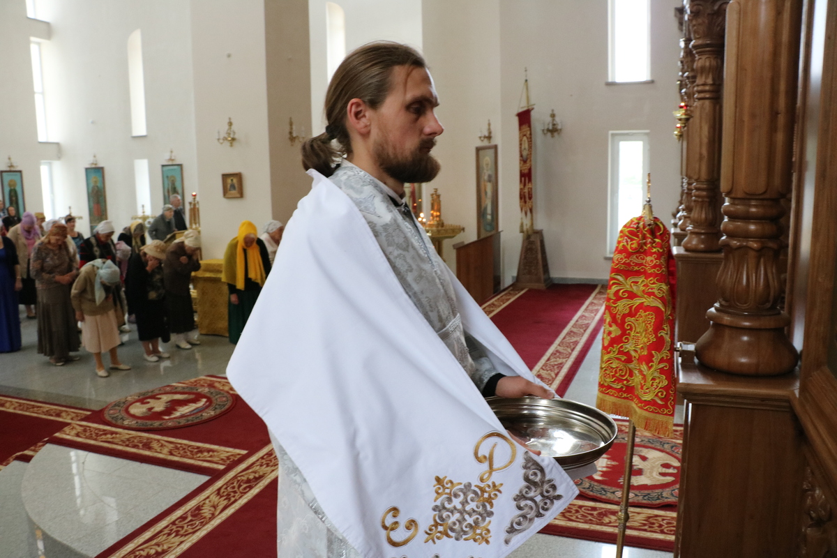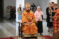 Его Преосвященству сослужили: настоятель Владимирского собора протоиерей Алексей Зайцев, клирик Свято-Воскресенского собора иерей Георгий Дворовой.