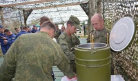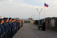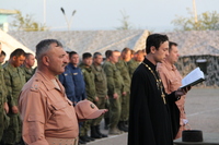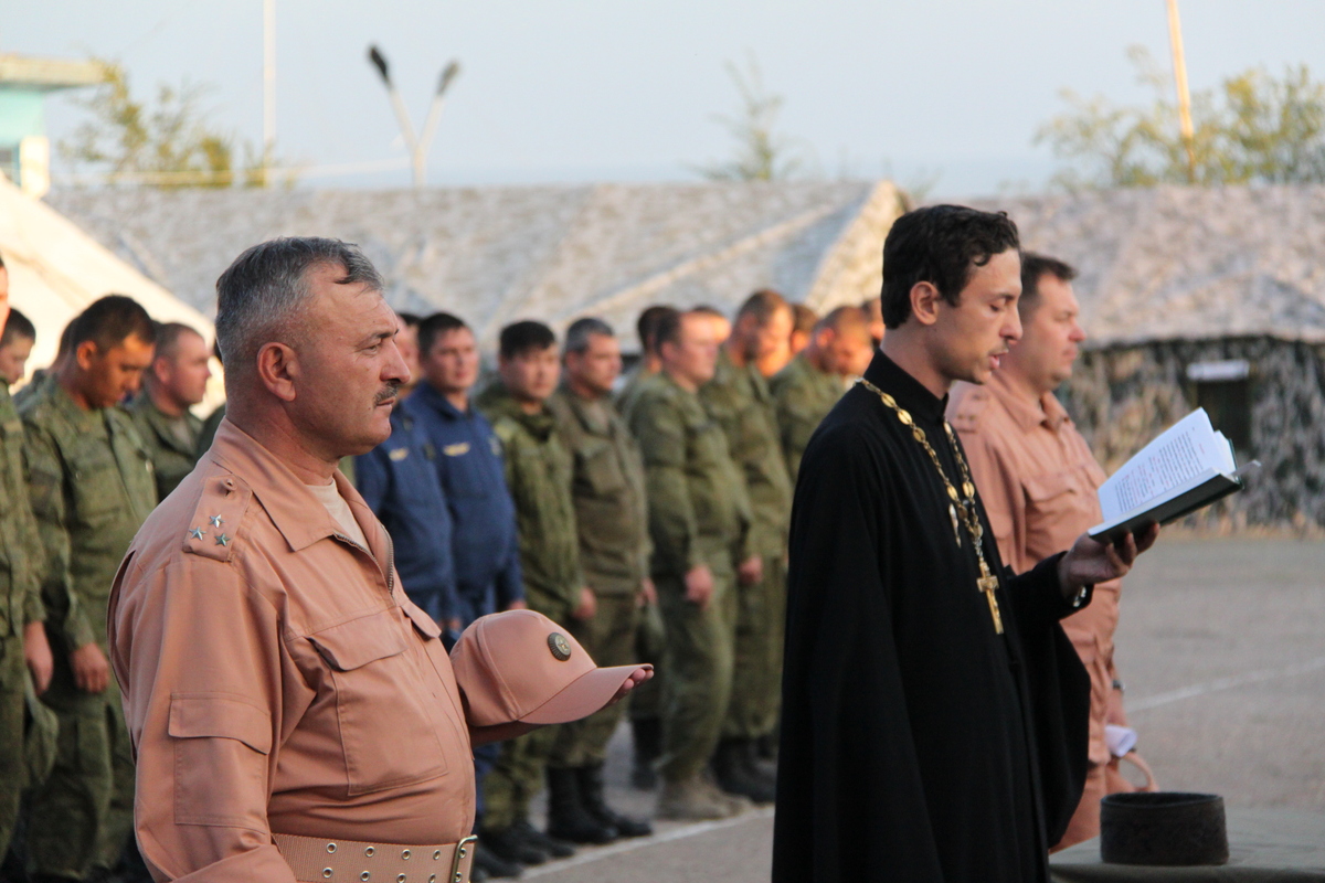 Рано утром 15 сентября, в день начала учений, священник Евгений совершил водосвятный молебен, по окончании которого он окропил святой водой личный состав лагеря. Всем желающим священник давал православные деревянные крестики, привезенные из Греции. А желающих, по его словам, было много, некоторые брали крестики также для своих близких.