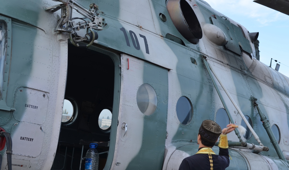 В самом начале учений перед взлетом священник окроплял святой водой летный, инженерно-технический состав и освятил авиационную технику российского контингента. А в последующие дни он стал благословлять также и авиаторов стран-союзниц России по ШОС. Примечательно, что со словами «Бог един» они сами попросили об этом.