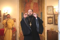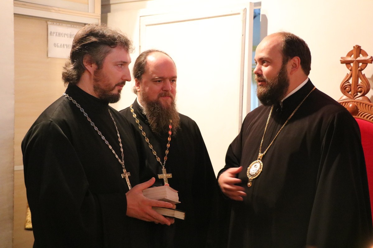 Его Преосвященству сослужили: митрофорный протоиерей Валентин Никонов, насельники Свято-Троицкой Александро-Невской лавры игумен Макарий (Зеленков), иеромонах Димитрий (Самойлов), благочинный Бишкекского округа протоиерей Андрей Кунавин, клирики Свято-Воскресенского собора иерей Георгий Дворовой, иерей Сергий Чудайкин.