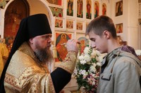 За богослужением игумен Макарий (Зеленков) помазал верующих освященным елеем. Во время помазания прихожанам храма были розданы иконки святого благоверного князя Александра Невского.