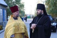 По завершении богослужения Его Преосвященство ознакомился с ходом строительства гимназии и воскресной школы на территории Ново-Покровского храма.