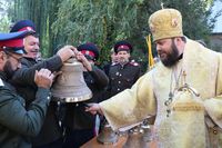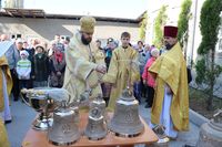 По окончании Причастия Владыка Даниил совершил освящение колоколов и возглавил славление перед иконой апостола и евангелиста Иоанна Богослова.