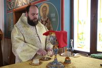 Его Преосвященству сослужили: насельник Свято-Троицкой Александро-Невской лавры игумен Макарий (Зеленков), настоятель Александро-Невского храма иерей Евгений Циклаури, ключарь Свято-Воскресенского собора иерей Георгий Дворовой.