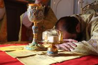В проповеди перед Причастием архипастырь Бишкекской епархии обратился к прихожанам со словом назидания. В своем слове Владыка Даниил разъяснил воскресное Евангелие от Луки: «Сказанное в Евангелии от Луки относится к ежедневному христианскому быту. Хорошо когда ты любишь человека, который любит тебя. Легко уважать человека, который уважает тебя. Но Господь говорит нам о том, что это делают и язычники – любят того, кто их любит, и помогают тому, кто им помогает. Есть же высшая мера любви – любить врагов своих, благословлять ненавидящих тебя. И взаймы давать от всего сердца, не ожидая, что тебе вернут занятое. В этом слове Господь показывает нам, что есть любовь истинная. У нас же, у христиан, зачастую помысел такой же как у язычников. Мы ничем не отличаемся от них, потому что не имеем в сердце любви заповеданной нам Господом. В Новом Завете Господь призывает нас иметь в сердце Христову любовь. Призывает нас возвысится над земным в сердце своем и в уме. Очень непросто нам любить врагов своих, очень не просто нам прощать, тех, кто оклеветал нас или обидел незаслуженно. В этом случае, мы, скорее всего, будем держать злобу и ненависть в своем сердце и мыслях. Вот Господь нас и призывает – станьте выше этого и тогда действительно мы сможем приблизиться к тем Божественным истинам, к которым нас призывает Спаситель. Поэтому дорогие братия и сестры, вкладывая чтение сегодняшнего воскресного Евангелия в сердце, мы должны понять, что должны превзойти все человеческое и возвысится к небесному. Стоит только попробовать и мы убедимся на практике – если мы простим врагов своих, нам станет легче жить, и сердцу нашему будет намного спокойнее. Когда же в сердце нашем ненависть, она действует как ржавчина, как язва, разъедающая наше естество, нашу жизнь и дела. А созидание заключается в любви к врагам нашим, в прощении нанесенных обид, в совершении добродетели – не ради нашей чести и славы, а ради славы Божией, ради нашего же спасения. Аминь».