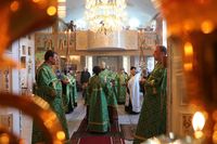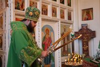 Его Преосвященству сослужили: настоятель храма святого праведного Иоанна Кронштадтского протоиерей Андрей Борисенко, ключарь Свято-Воскресенского собора иерей Георгий Дворовой, клирик Свято-Воскресенского собора иерей Олег Белотуркин, иерей Вадим Паскин.