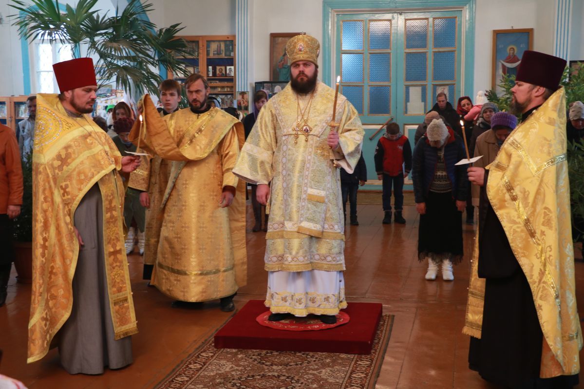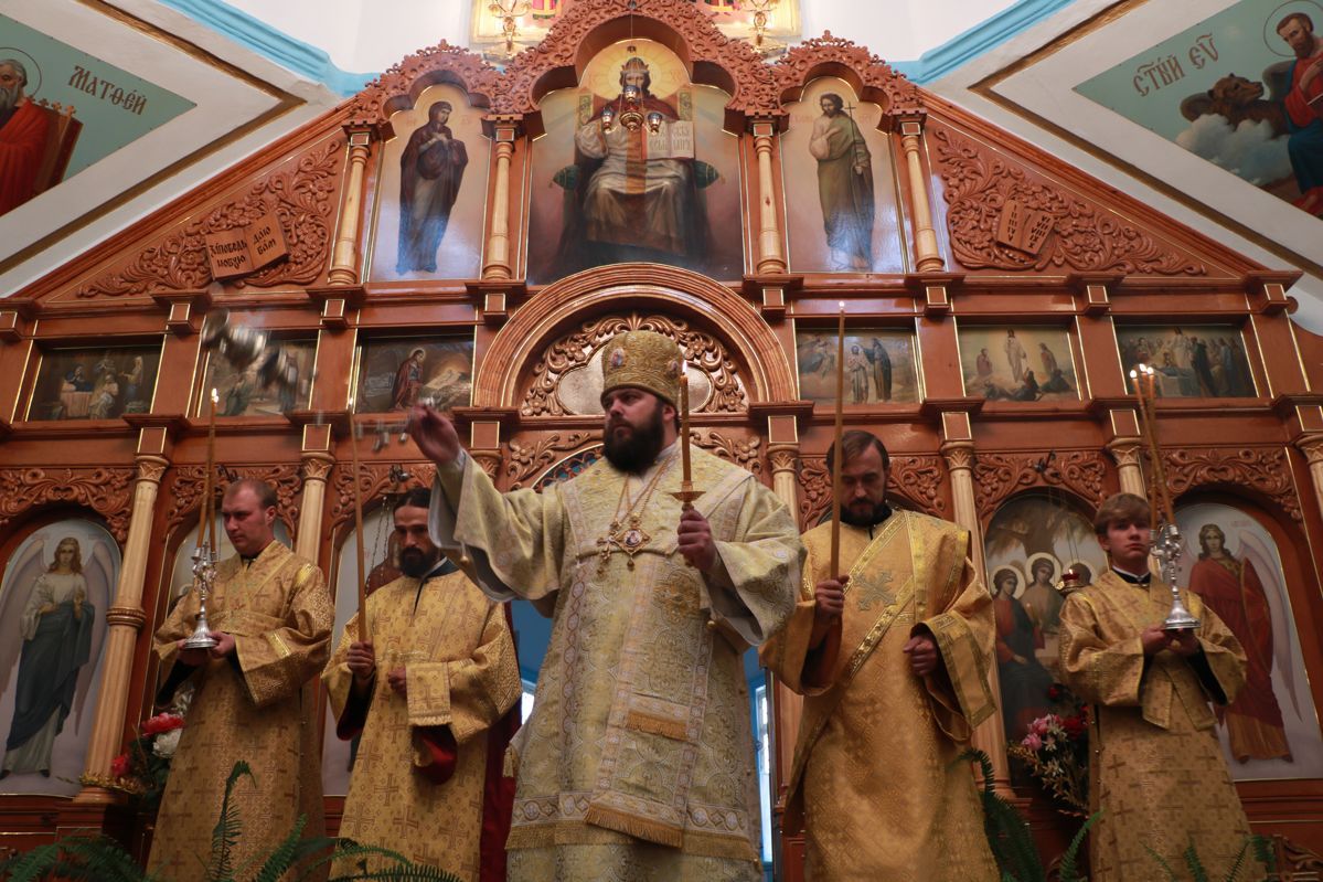 Его Преосвященству сослужили: настоятель Свято-Троицкого храма протоиерей Сергий Чувичкин, ключарь Свято-Воскресенского собора иерей Георгий Дворовой.