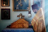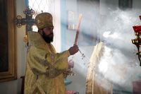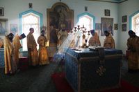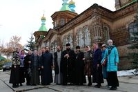 Его Преосвященству сослужили: благочинный Иссык-Кульского благочиния, настоятель Троицкого храма протоиерей Сергий Чувичкин, иеромонах Досифей (Чернядьев), иерей Иоанн Шаповал, приехавшие в составе паломнической группы от Вятской митрополии, ключарь Свято-Воскресенского собора иерей Георгий Дворовой.