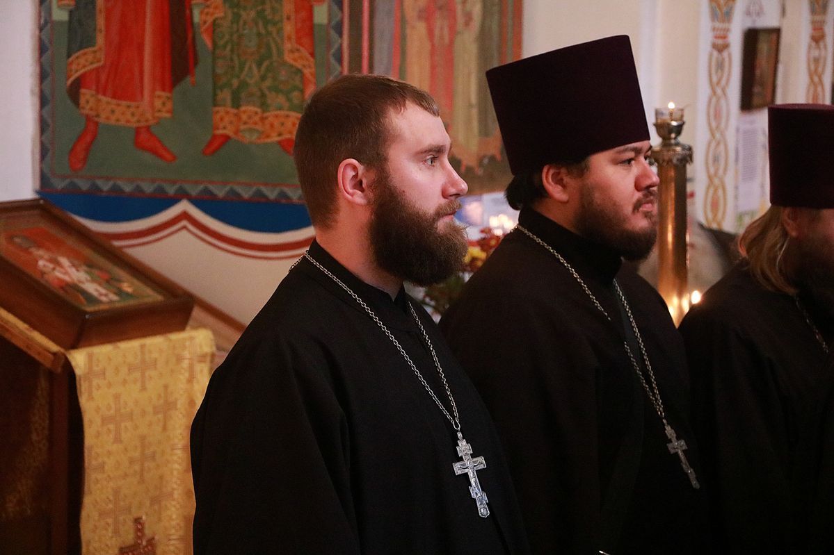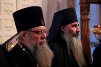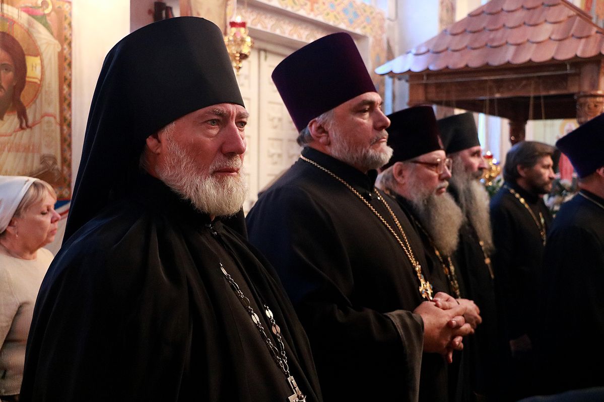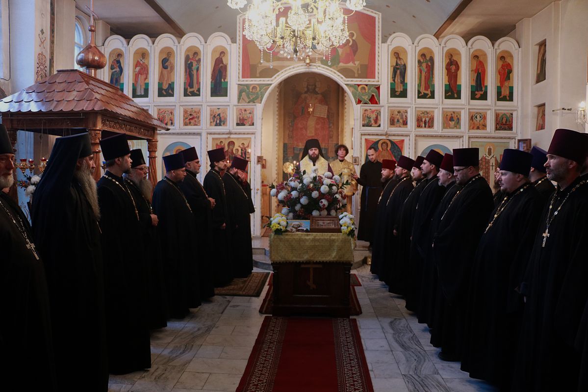 Его Преосвященству сослужили: благочинный Ошского округа протоиерей Виктор Реймген, благочинный Иссык-Кульского округа протоиерей Сергий Чувичкин, ключарь Свято-Воскресенского собора иерей Георгий Дворовой, благочинный Бишкекского округа протоиерей Андрей Кунавин, настоятель храма во имя святого праведного Иоанна Кронштадтского протоиерей Андрей Борисенко, клирики Свято-Воскресенского собора иерей Олег Белотуркин, иерей Вадим Паскин.