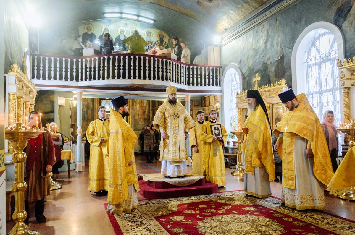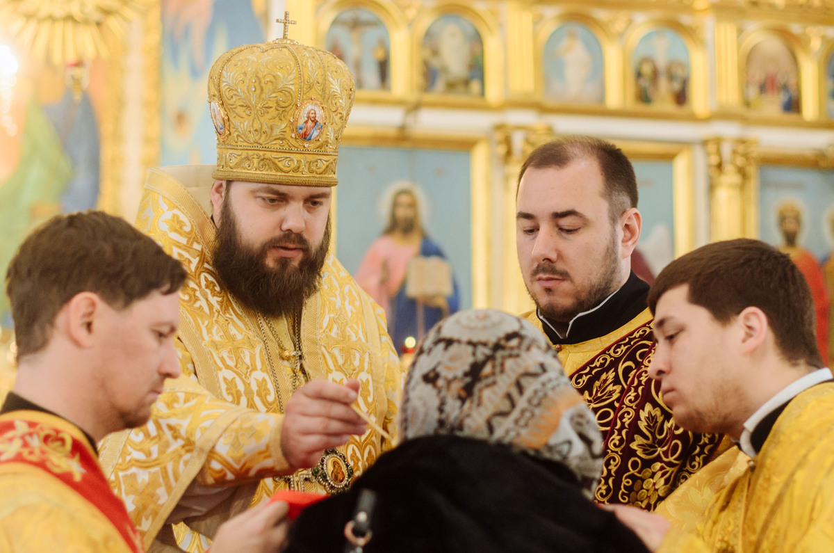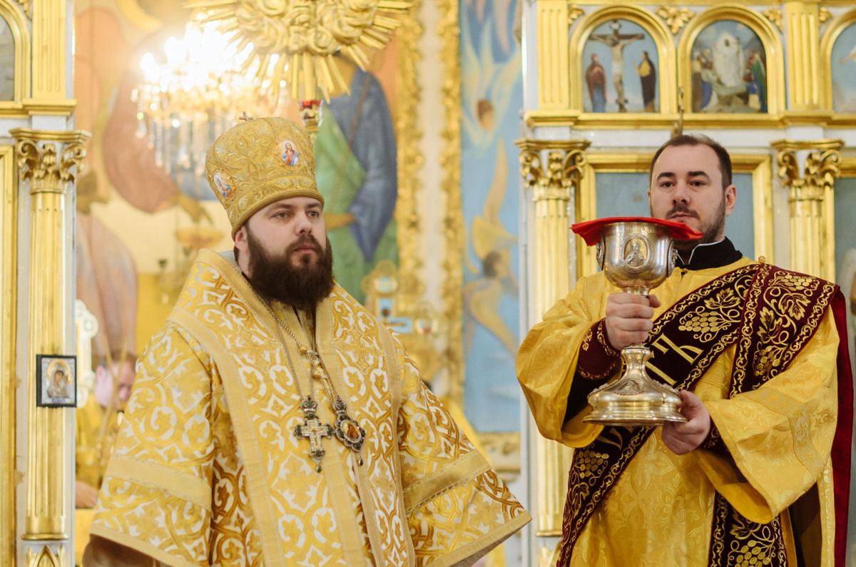 Его преосвященству сослужили: архимандрит Иоасаф (Серкез), иеромонах Модест (Дроздов), иерей Владислав Коваленко, иерей Николай Коваль, диакон Илья Давыдов, диакон Владимир Герасимов, диакон Евгений Гудзь.