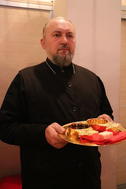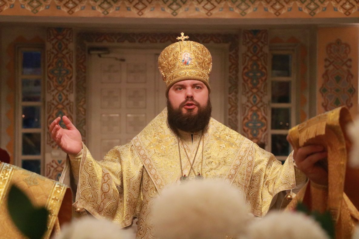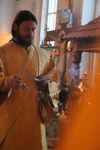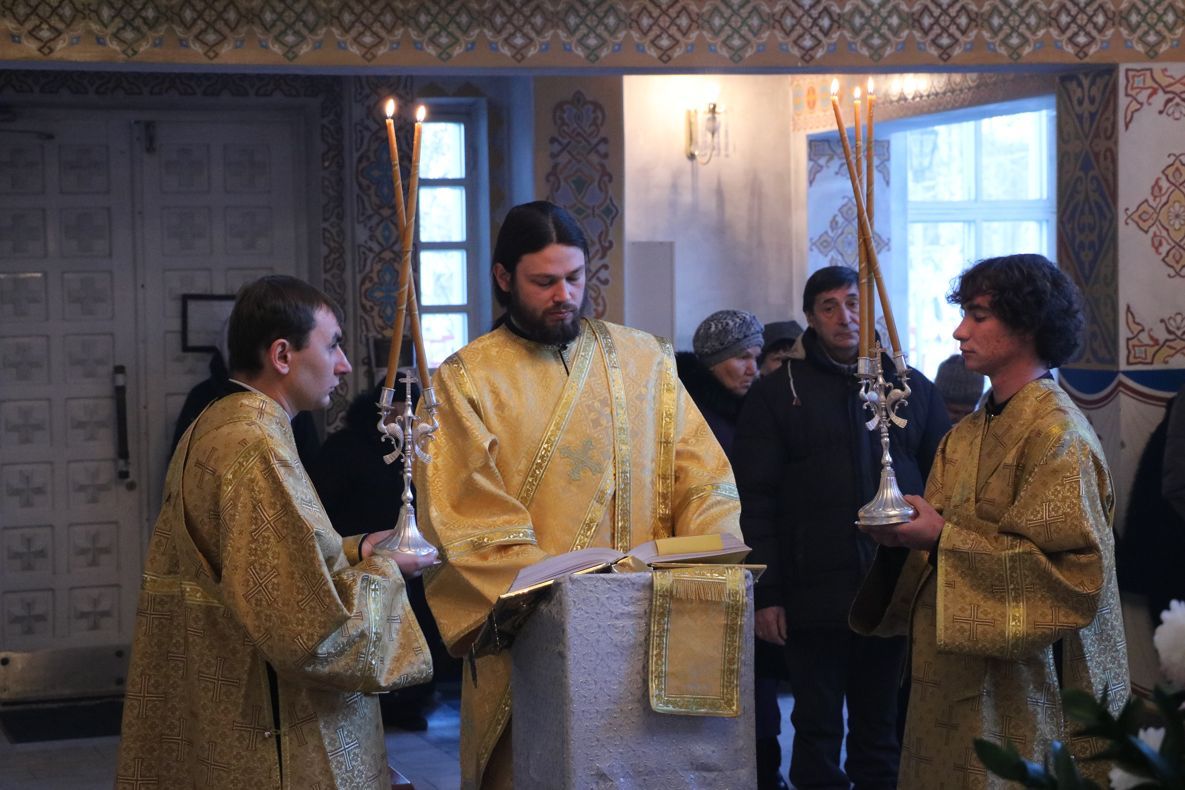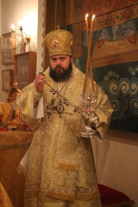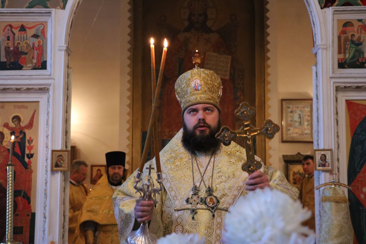 Его Преосвященству сослужили: митрофорный протоиерей Валентин Никонов, клирик Свято-Воскресенского собора иерей Олег Белотуркин.