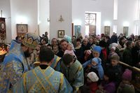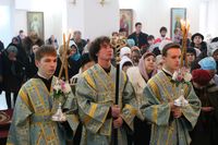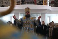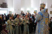Его Преосвященству сослужили: настоятель Владимирского собора протоиерей Алексей Зайцев, ключарь Свято-Воскресенского кафедрального собора иерей Георгий Дворовой.