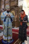 По завершении богослужения Его Преосвященство наградил руководителя церковно-археологического отдела Бишкекской епархии Екатерину Озмитель медалью преподобного Ираклия Иссык-Кульского III степени за труды в подготовке и проведении Свято-Антониевских чтений. Затем епископ Даниил обратился к прихожанам с архипастырским словом: