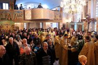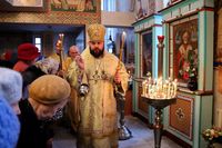 Его Преосвященству сослужили: митрофорный протоиерей Валентин Никонов, благочинный Бишкекского округа протоиерей Андрей Кунавин, клирик Свято-Воскресенского собора иерей Вадим Паскин.