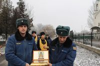 По благословению епископа Бишкекского и Кыргызстанского Даниила в храме Александра Невского авиационной базы ОДКБ "Кант" прошла встреча ковчега с мощами преподобного Севастьяна Карагандинского. Об этом сообщили в пресс-службе авиабазы.