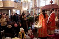 За богослужением было совершено славление и прочитана молитва великомученице Варваре перед ее святой иконой. Затем епископ Даниил обратился к прихожанам храма с архиерейским словом: